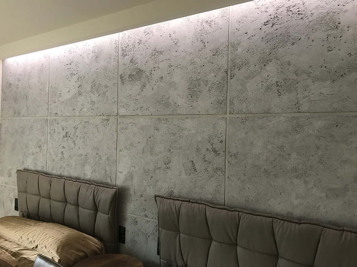 It gives the appearance of fair-faced concrete or limestone, depending on the application technique.